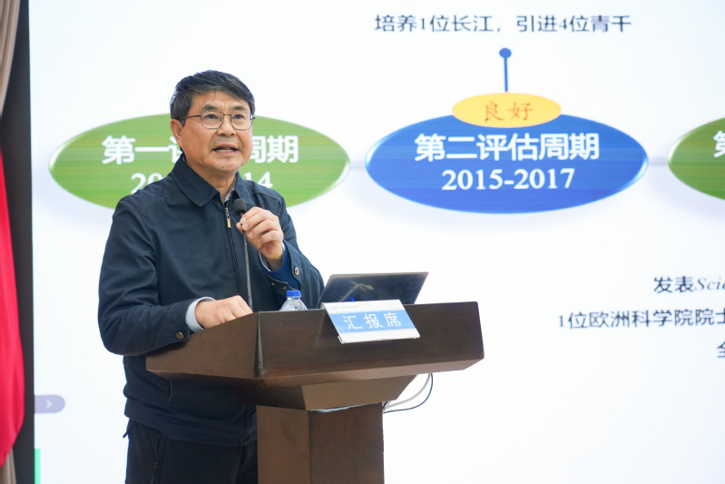 图2: 伏晴艳教授、陈建民教授和胡建林教授分别代表三个实验室汇报工作